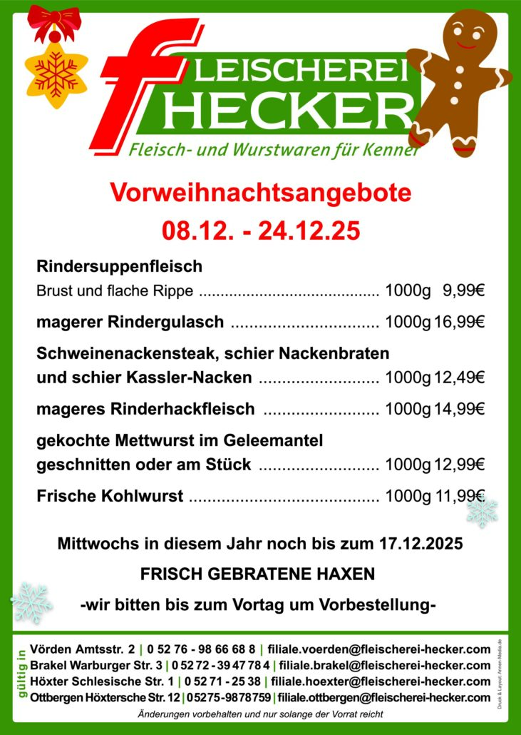 In unseren Fleischer-Fachgeschäften in Vörden, Höxter, Ottbergen und Brakel werden Sie von unserem kompetenten Verkaufspersonal individuell und fachgerecht beraten. Egal, ob sie einen Rat zu Ihrem klassischen Sonntagsbraten oder für Ihre Grillfeier benötigen – wir stehen Ihnen gerne mit Rat und Tat zur Seite.