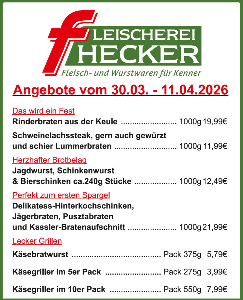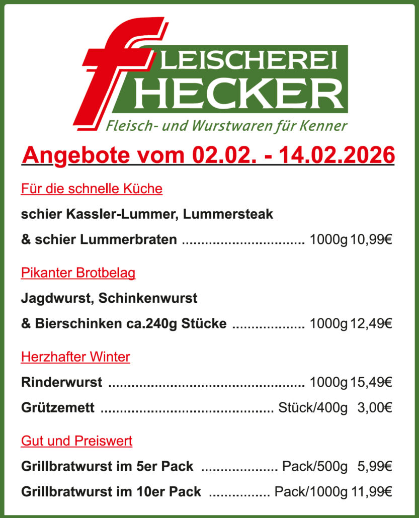 Unsere Qualitätsfleischerei, welche bereits in der dritten Generation schmackhafte und frische Fleisch- und Wurstwaren im Produktionsstandort Vörden herstellt, wurde 1955 von Franz Hecker Senior gegründet und 1981 von Franz und Sigrid Hecker weitergeführt. Seit 2017 führen wir, Franz und Karin Hecker, unser Familienunternehmen weiter, um auch in Zukunft unser Handwerk weiterzuentwickeln und Sie mit hochwertigen Fleisch- und Wurstwaren zu versorgen.