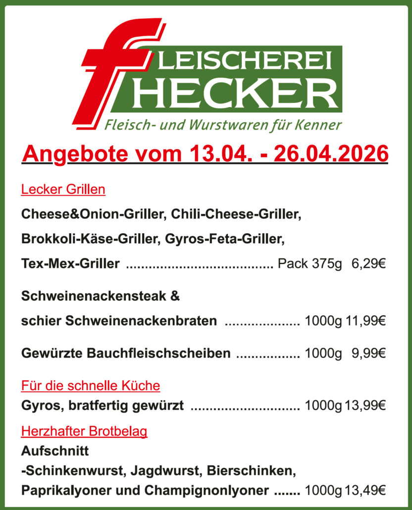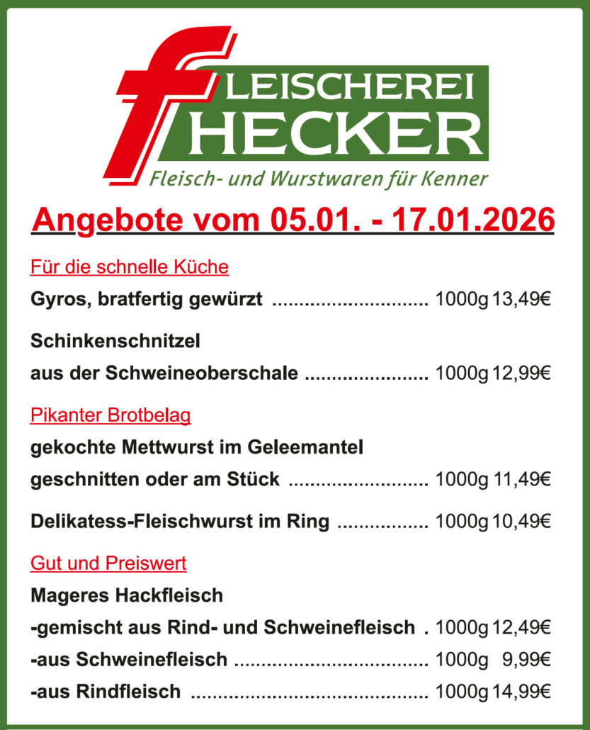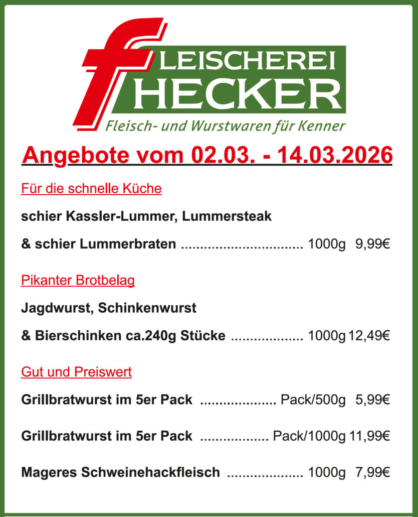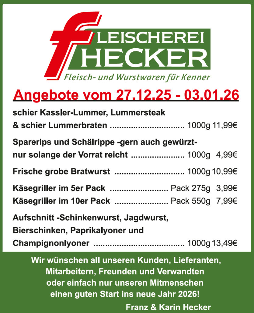 Unsere Qualitätsfleischerei, welche bereits in der dritten Generation schmackhafte und frische Fleisch- und Wurstwaren im Produktionsstandort Vörden herstellt, wurde 1955 von Franz Hecker Senior gegründet und 1981 von Franz und Sigrid Hecker weitergeführt. Seit 2017 führen wir, Franz und Karin Hecker, unser Familienunternehmen weiter, um auch in Zukunft unser Handwerk weiterzuentwickeln und Sie mit hochwertigen Fleisch- und Wurstwaren zu versorgen.